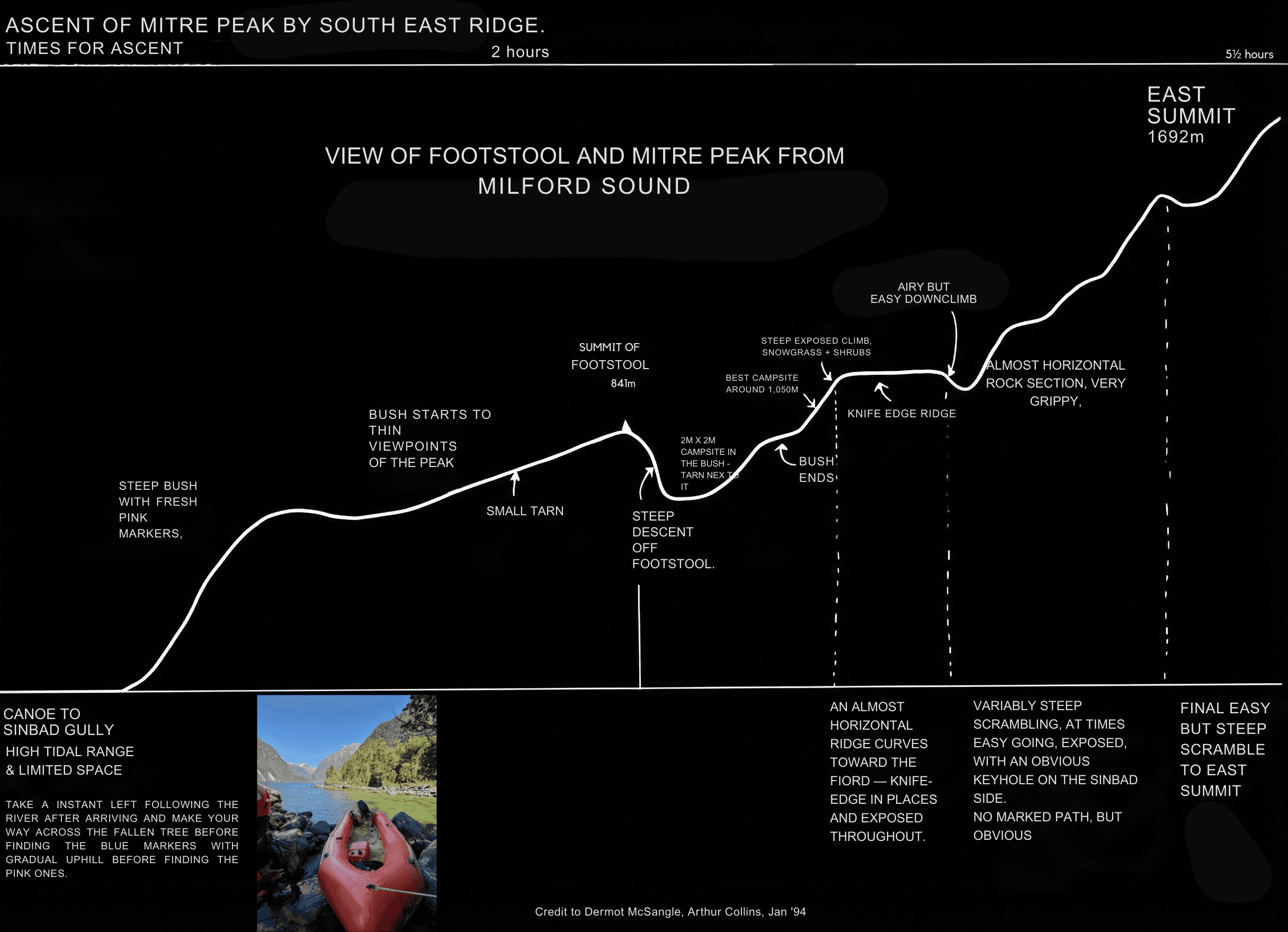 Detailed Route Description — South-East Ridge Ascent of Mitre Peak